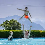 빌라는 인터라켄의 중심에서 3km, 하르더 쿨룸에서 4.3km 정도 떨어진 곳에 위치합니다. "Lazy Rancho 4" Panorama Camping Eiger-Monch-Jungfrau 호텔에서는 개인 금고, 개인 금고, 커피 및 티 메이커가 있는 방이 제공됩니다.